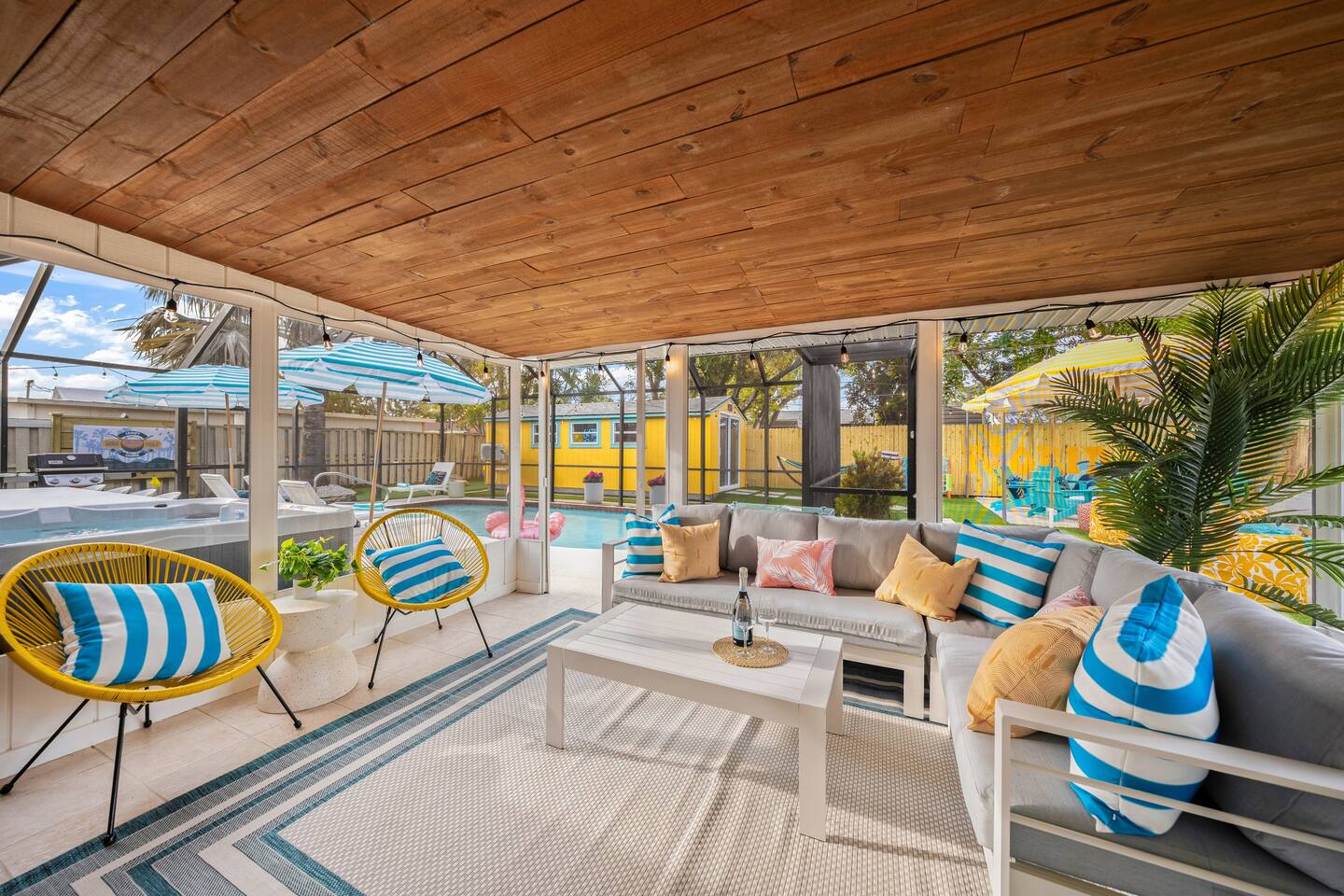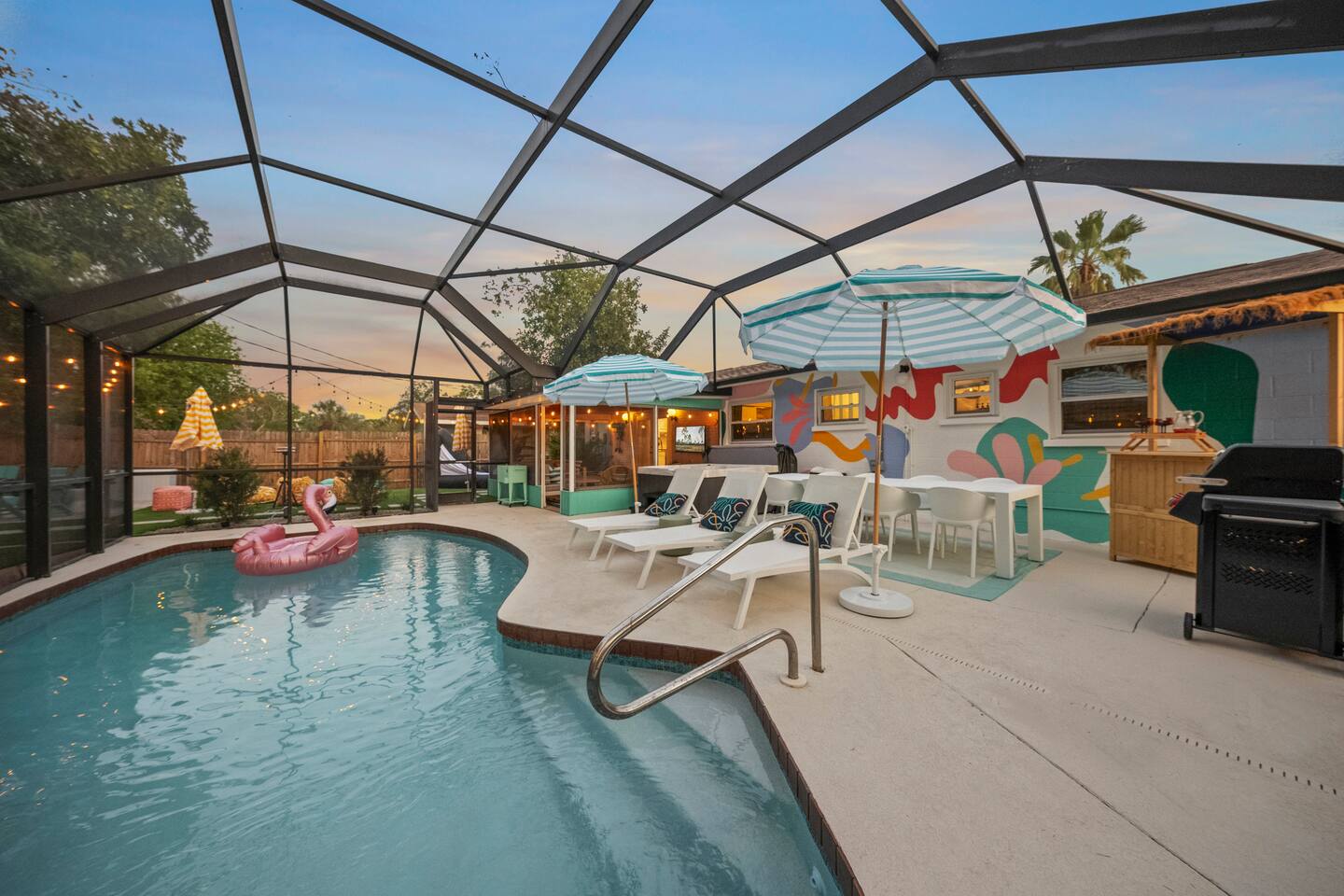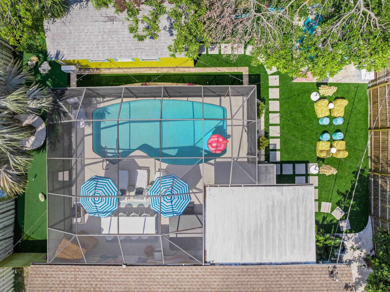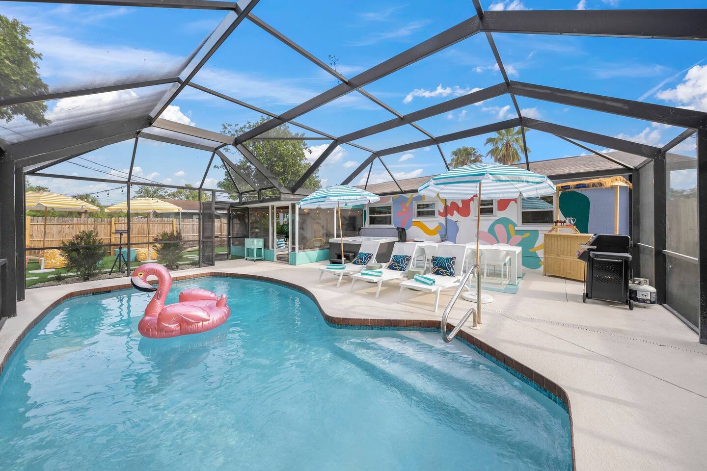 Welcome to The Wild Pelican House, a vacation rental designed with one mission: unleash the wild child in every family member. This isn't just a place to sleep — it's a full-on family adventure! Whether you're cannonballing into the heated pool, putting for par on the 3-hole mini golf course, or lighting up the night with an outdoor movie under the stars, this home brings FUN to your Florida getaway. Nestled in a peaceful South Bradenton neighborhood, you'll still be just minutes from Anna Maria Island, IMG Academy, Bradenton Riverwalk, Robinson Preserve, and all the Gulf Coast’s greatest hits including 18mi from Siesta Key, the #4 beach in in the world and #1 in America. Highlights You’ll LOVE: ~Heated Pool — Year-round fun! ~Private Mini Golf Course — 3 holes to challenge your wild crew. ~Hot Tub — Soak under the stars after a day at the beach. ~Outdoor Movie Theater — Movies by the pool? YES PLEASE. ~Backyard Arcade & Game Shed — Rainy day? No problem. ~Fire Pit & Grill — S'mores, BBQ, and chill nights await. ~ TV's in each bedroom ~Toiletries provided- for an easy breezy packing experience ~Quiet Neighborhood — Safe & serene but near everything fun. 🐬 Nearby Adventures (Short Drive Times): Anna Maria Island Beaches - (6 miles | 17 min) Bradenton Riverwalk - (6 miles | 15 min) Robinson Preserve - (7 miles | 17 min) De Soto National Memorial - (6 miles | 15 min) Village of the Arts - (5 miles | 12 min) IMG Academy - (4 miles | 10 min) Sarasota Jungle Gardens - (12 miles | 20 min) Mote Marine Laboratory & Aquarium - (14 miles | 25 min) Golf is nearby- take your pick of several courses just minutes away! Why Guests LOVE The Wild Pelican House: ~ Designed for wild kids AND parents who want to relax ~Loaded with activities without ever leaving the house ~Heated pool beats all those chilly 4-star competitor pools ~Full arcade = instant hit with teens and adults alike ~Thoughtful touches, playful decor, and surprises throughout ~Cozy, comfortable, and created for making lasting memories ~Owners who actually GET what families need for a great vacation The Space: ~ Shampoo, Conditioner, Soap, Lotion, Makeup wipes, and starter packs of toilette paper, paper towels, dishwasher pods, laundry detergent, and dryer sheets provided for your convenience. Additional products will need to be purchased. ~Starter coffee beans, coffee pods, tea, and sweeteners provided ~Large Game Room includes shuffle board, air hockey, Pacman, NBA Jams, a photo op, and large TV. ~Smart TV's throughout the house, including every bedroom. We provide a Netflix subscription and live cable through Spectrum. Feel free to log into your other subscription channels upon arrival ~We have a very large driveway that can easily accommodate a boat or camper and vehicles ~Fully equipped kitchen with all brand new appliances including a dual drip and pod coffee maker, blender, toaster, Breville microwave/ toaster oven/ air fryer, crock pot, dishwasher, stove, and all the amenities you need in the kitchen! ~The house is stocked with beach essentials, including chairs, a wagon, a cooler, toys, shovels, knee boards, and wave boards. ~High speed internet with a desk in the primary bedroom makes a suitable place to work for the day. ~Iron, ironing board, steamer, vacuum, broom, and hair dryer are in the property available for use. ~ The nursery nook off the primary bedroom includes a full size crib, 2 drawer nightstand, sound machine, and baby monitors. There is an additional pack and play in the queen bedroom and a Kub high chair in the kitchen. Accessing the Property: ~Our goal is to always provide a 5-star guest experience. Our check in process is easy with a guest door code that changes after each stay. Check in after 4pm and check out before 10am. ~We have two Ring cameras at the front of home and by the side door for your safety. There are no cameras or audio recording in social spaces or at the rear of the home. ~You may occasionally see our maintenance team at the property for the pool, spa, lawn, pest control, and trash. Pool, spa, and lawncare come weekly and pest control sprays quarterly. A neighbor takes out our trashcans. Reminders: ~ The entire property is NO SMOKING and PET FREE ~Florida is in a tropical environment. We have professional pest control treat regularly, but it is not possible to eliminate all bugs inside and outside the home. Please pack bug spray and expect mosquitos, lizards, and other potential small bugs. ~ Please enjoy the entire property and the privacy that comes with it, but be respectful of our neighbors. Quiet hours are from 10pm-8am. Please do not play loud music during those hours. ~We strongly encourage guests to purchase travel insurance offered through Airbnb. It will provide financial protection in case unexpected events occur, including inclement weather. We do not process refunds outside of the cancellation policy. Thank you in advance for your understanding.