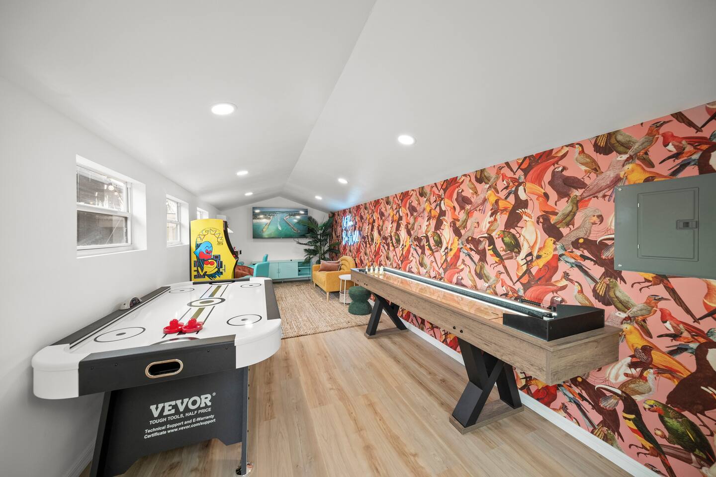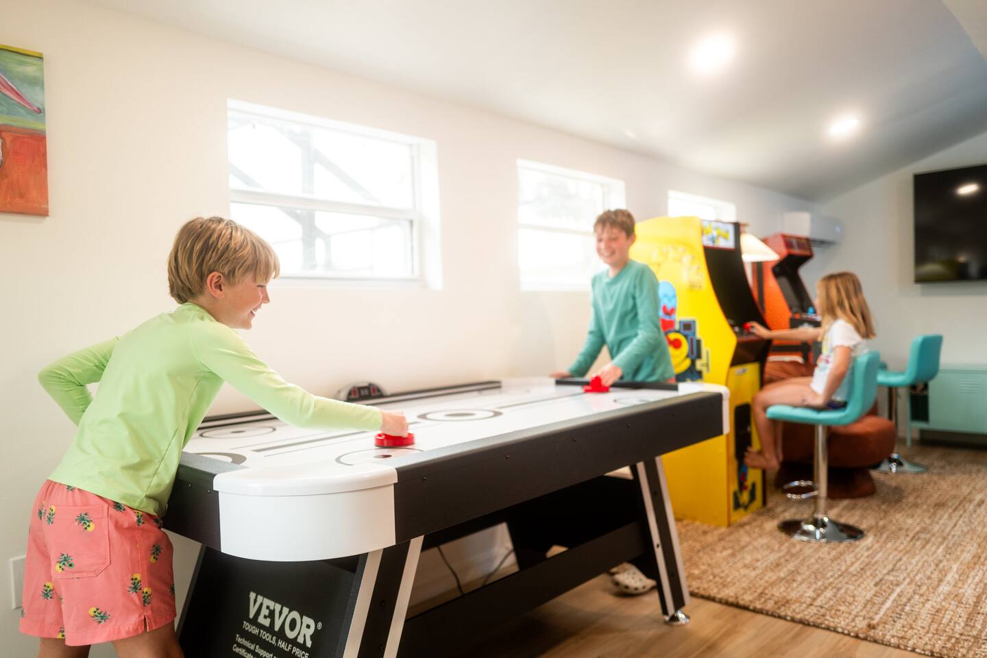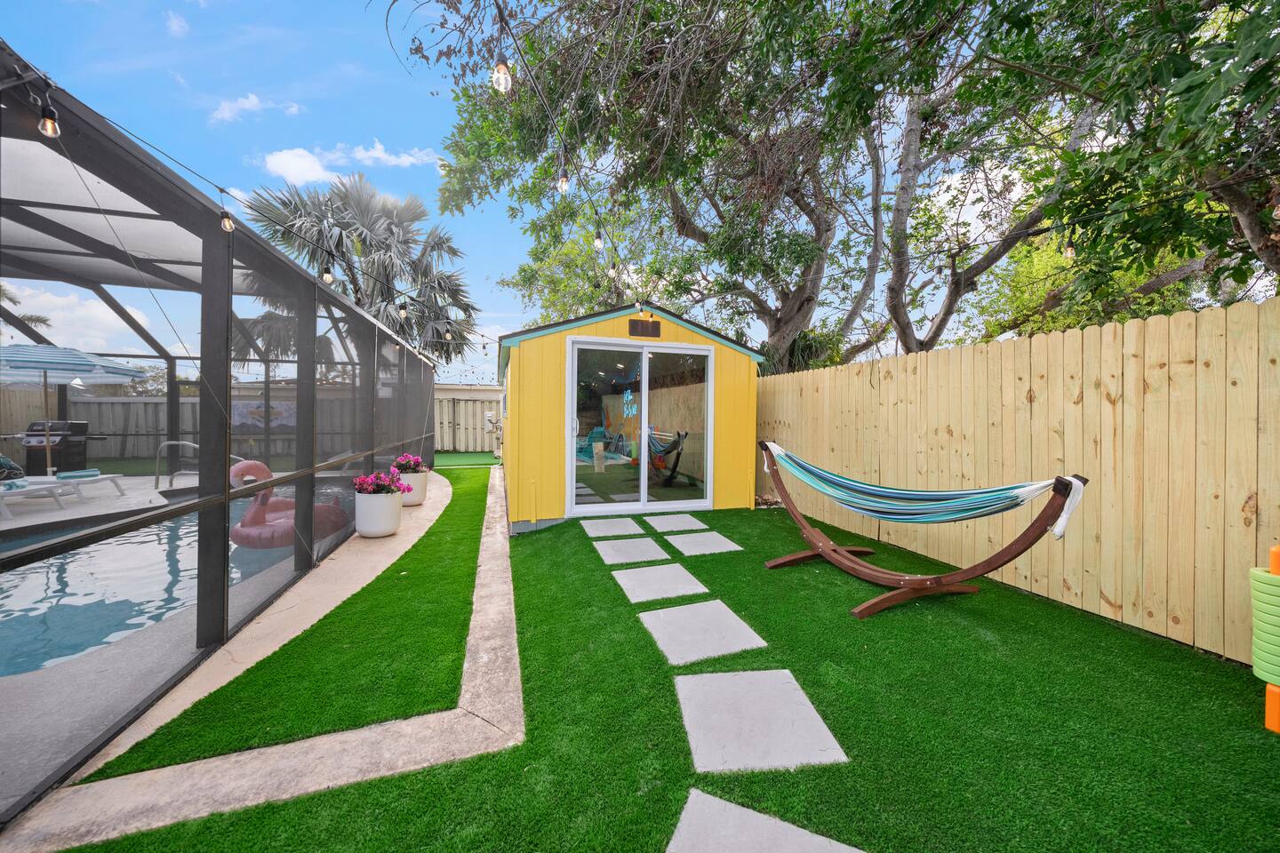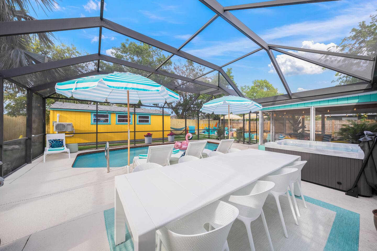 Welcome to The Wild Pelican House, a vacation rental designed with one mission: unleash the wild child in every family member. This isn't just a place to sleep — it's a full-on family adventure! Whether you're cannonballing into the heated pool, putting for par on the 3-hole mini golf course, or lighting up the night with an outdoor movie under the stars, this home brings FUN to your Florida getaway. Nestled in a peaceful South Bradenton neighborhood, you'll still be just minutes from Anna Maria Island, IMG Academy, Bradenton Riverwalk, Robinson Preserve, and all the Gulf Coast’s greatest hits including 18mi from Siesta Key, the #4 beach in in the world and #1 in America. Highlights You’ll LOVE: ~Heated Pool — Year-round fun! ~Private Mini Golf Course — 3 holes to challenge your wild crew. ~Hot Tub — Soak under the stars after a day at the beach. ~Outdoor Movie Theater — Movies by the pool? YES PLEASE. ~Backyard Arcade & Game Shed — Rainy day? No problem. ~Fire Pit & Grill — S'mores, BBQ, and chill nights await. ~ TV's in each bedroom ~Toiletries provided- for an easy breezy packing experience ~Quiet Neighborhood — Safe & serene but near everything fun. 🐬 Nearby Adventures (Short Drive Times): Anna Maria Island Beaches - (6 miles | 17 min) Bradenton Riverwalk - (6 miles | 15 min) Robinson Preserve - (7 miles | 17 min) De Soto National Memorial - (6 miles | 15 min) Village of the Arts - (5 miles | 12 min) IMG Academy - (4 miles | 10 min) Sarasota Jungle Gardens - (12 miles | 20 min) Mote Marine Laboratory & Aquarium - (14 miles | 25 min) Golf is nearby- take your pick of several courses just minutes away! Why Guests LOVE The Wild Pelican House: ~ Designed for wild kids AND parents who want to relax ~Loaded with activities without ever leaving the house ~Heated pool beats all those chilly 4-star competitor pools ~Full arcade = instant hit with teens and adults alike ~Thoughtful touches, playful decor, and surprises throughout ~Cozy, comfortable, and created for making lasting memories ~Owners who actually GET what families need for a great vacation The Space: ~ Shampoo, Conditioner, Soap, Lotion, Makeup wipes, and starter packs of toilette paper, paper towels, dishwasher pods, laundry detergent, and dryer sheets provided for your convenience. Additional products will need to be purchased. ~Starter coffee beans, coffee pods, tea, and sweeteners provided ~Large Game Room includes shuffle board, air hockey, Pacman, NBA Jams, a photo op, and large TV. ~Smart TV's throughout the house, including every bedroom. We provide a Netflix subscription and live cable through Spectrum. Feel free to log into your other subscription channels upon arrival ~We have a very large driveway that can easily accommodate a boat or camper and vehicles ~Fully equipped kitchen with all brand new appliances including a dual drip and pod coffee maker, blender, toaster, Breville microwave/ toaster oven/ air fryer, crock pot, dishwasher, stove, and all the amenities you need in the kitchen! ~The house is stocked with beach essentials, including chairs, a wagon, a cooler, toys, shovels, knee boards, and wave boards. ~High speed internet with a desk in the primary bedroom makes a suitable place to work for the day. ~Iron, ironing board, steamer, vacuum, broom, and hair dryer are in the property available for use. ~ The nursery nook off the primary bedroom includes a full size crib, 2 drawer nightstand, sound machine, and baby monitors. There is an additional pack and play in the queen bedroom and a Kub high chair in the kitchen. Accessing the Property: ~Our goal is to always provide a 5-star guest experience. Our check in process is easy with a guest door code that changes after each stay. Check in after 4pm and check out before 10am. ~We have two Ring cameras at the front of home and by the side door for your safety. There are no cameras or audio recording in social spaces or at the rear of the home. ~You may occasionally see our maintenance team at the property for the pool, spa, lawn, pest control, and trash. Pool, spa, and lawncare come weekly and pest control sprays quarterly. A neighbor takes out our trashcans. Reminders: ~ The entire property is NO SMOKING and PET FREE ~Florida is in a tropical environment. We have professional pest control treat regularly, but it is not possible to eliminate all bugs inside and outside the home. Please pack bug spray and expect mosquitos, lizards, and other potential small bugs. ~ Please enjoy the entire property and the privacy that comes with it, but be respectful of our neighbors. Quiet hours are from 10pm-8am. Please do not play loud music during those hours. ~We strongly encourage guests to purchase travel insurance offered through Airbnb. It will provide financial protection in case unexpected events occur, including inclement weather. We do not process refunds outside of the cancellation policy. Thank you in advance for your understanding.